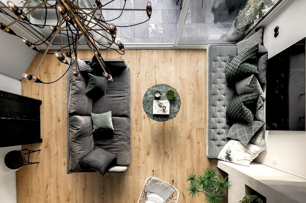 - Mieti myös kontrastin luomista. Rustiikkinen lattia luo ainutlaatuisen taustan modernille sisustukselle.