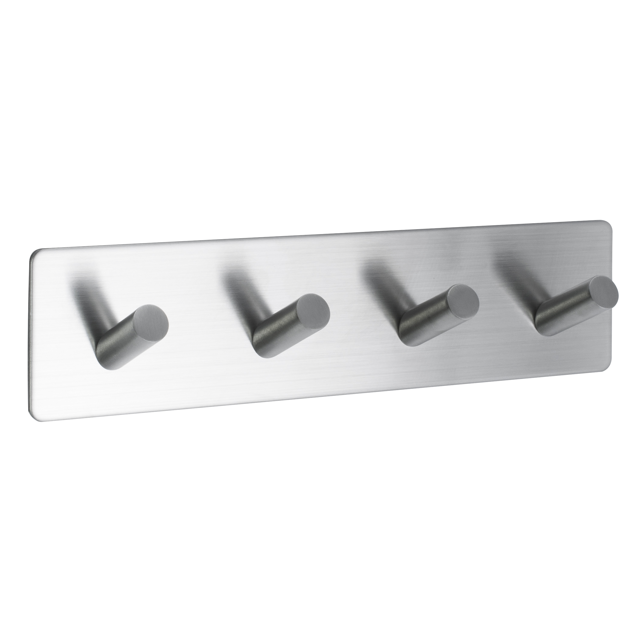 Harjattua terästä oleva neljän koukun pyyhekoukku. Helppo ja nopea tarrakiinnitys tasaiselle alustalle. Mitat 180 × 30 × 45 mm.