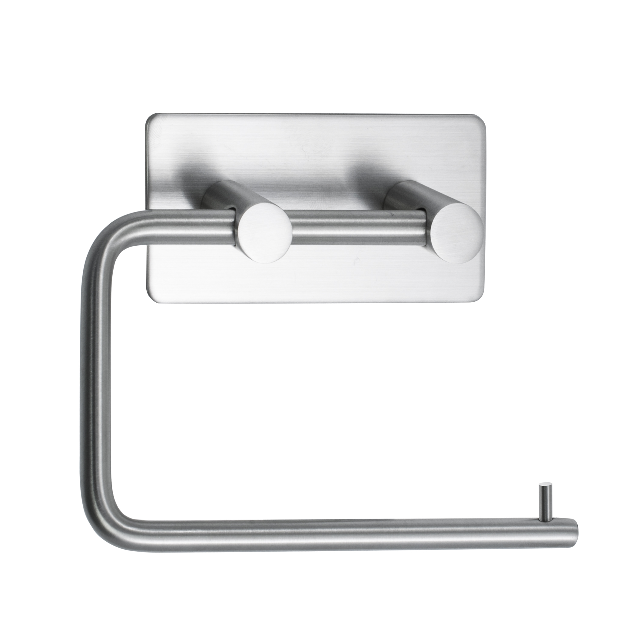 Harjattua terästä oleva WC‑paperiteline. Helppo ja nopea tarrakiinnitys tasaiselle alustalle. Mitat 135 × 28 × 100 mm, taustalevy 90 × 45 mm.