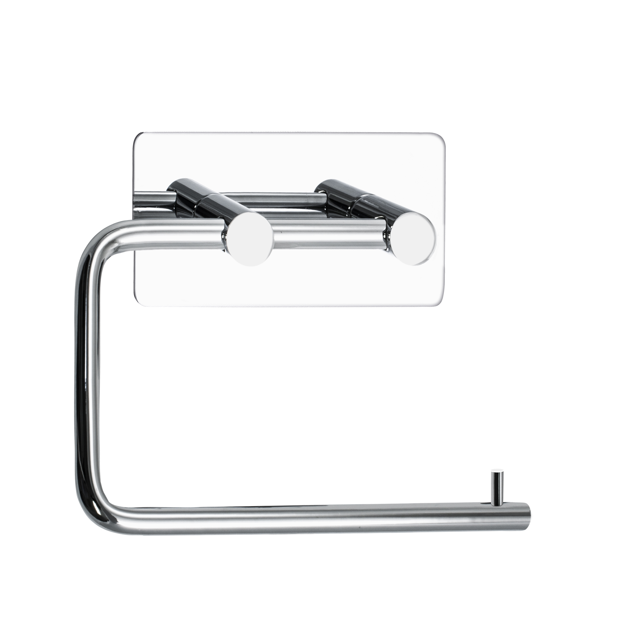 Kromipintainen WC‑paperiteline, helppo ja nopea tarrakiinnitys tasaiselle alustalle. Mitat 135 × 28 × 100 mm, taustalevy 90 × 45 mm.