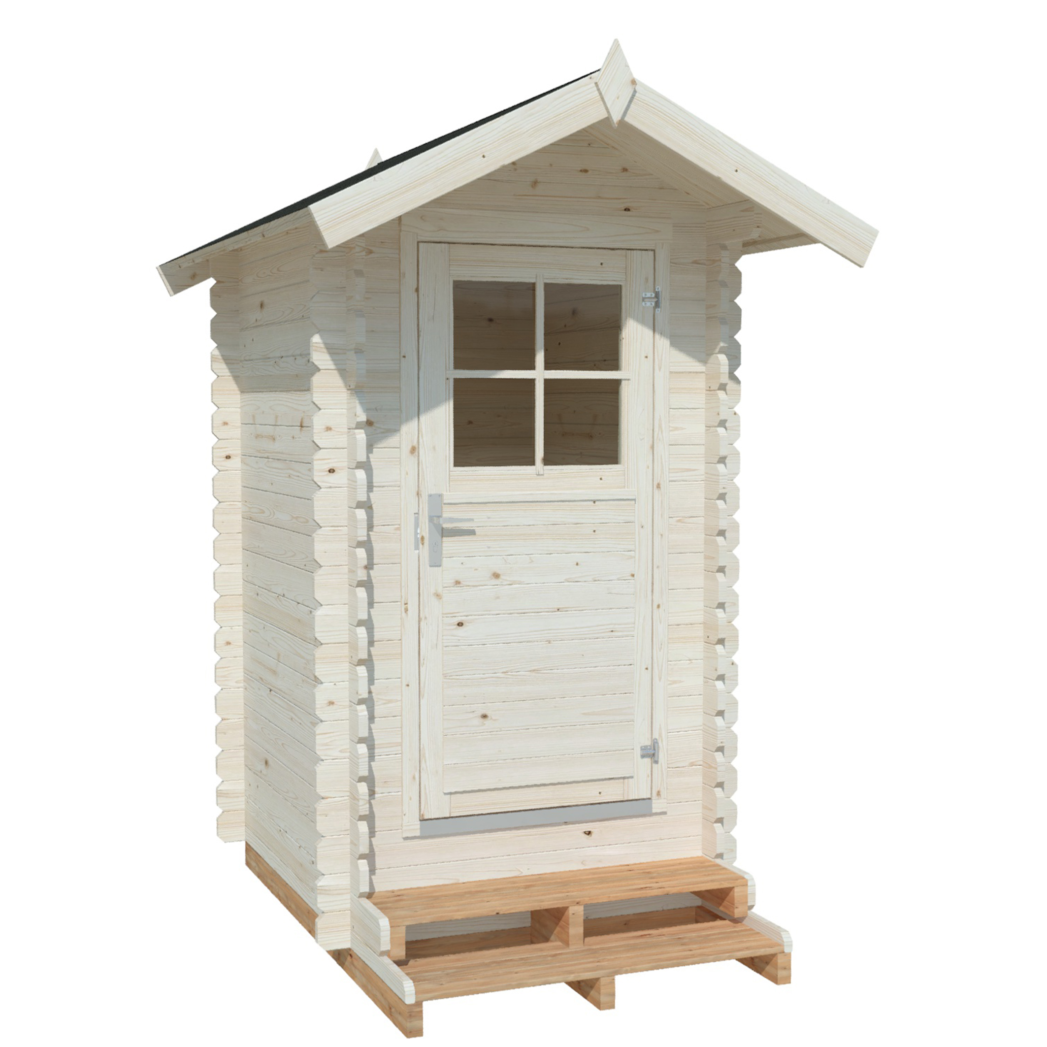Viehättävä ja kompaktin kokoinen ulkohuussi sopii erinomaisesti kesämökeille ja muihin kohteisiin, joissa ei ole viemäröintiä. Ulkomitat ovat 1400 × 1600 mm, ja lattiapinta‑ala on 1144 × 1344 mm (1,54 m²). Kokonaistilavuus on 3,64 m³, seinäkorkeus 222 cm ja kokonaiskorkeus 262 cm. Pakettiin sisältyvät 16 mm käsittelemättömät lattialaudat sekä 28 mm paksusta kevythirrestä valmistetut seinät. Katon katemateriaali myydään erikseen. Käsittelemättömät seinäpinnat voi viimeistellä haluamallaan tavalla ulkokäyttöön sopivilla suoja‑aineilla, kuten maalilla, lakalla tai kuullotteella.